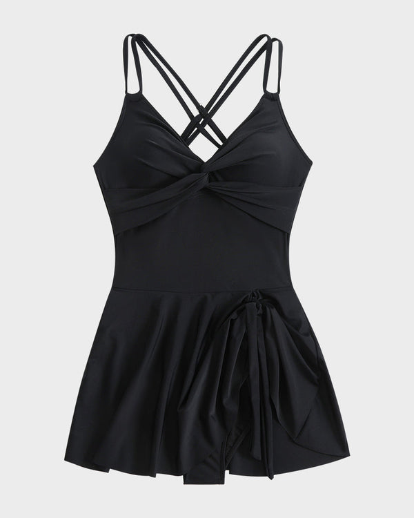 Introducing the Knot Hem Ruched One-Piece Swim Dress, a stylish and elegant choice for your beach or poolside adventures. This swim dress combines the comfort of a one-piece with the playful flair of a dress, ensuring you look fabulous while enjoying the sun.