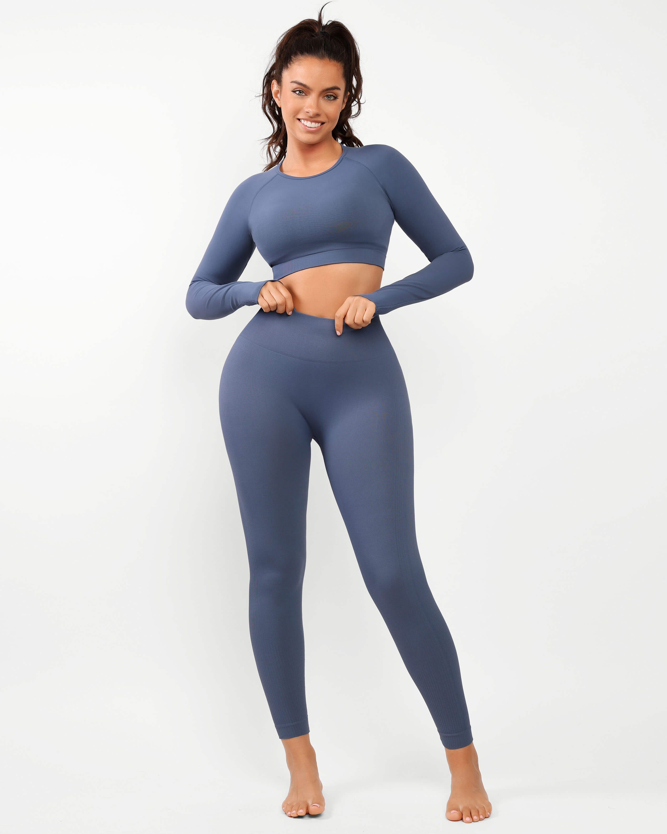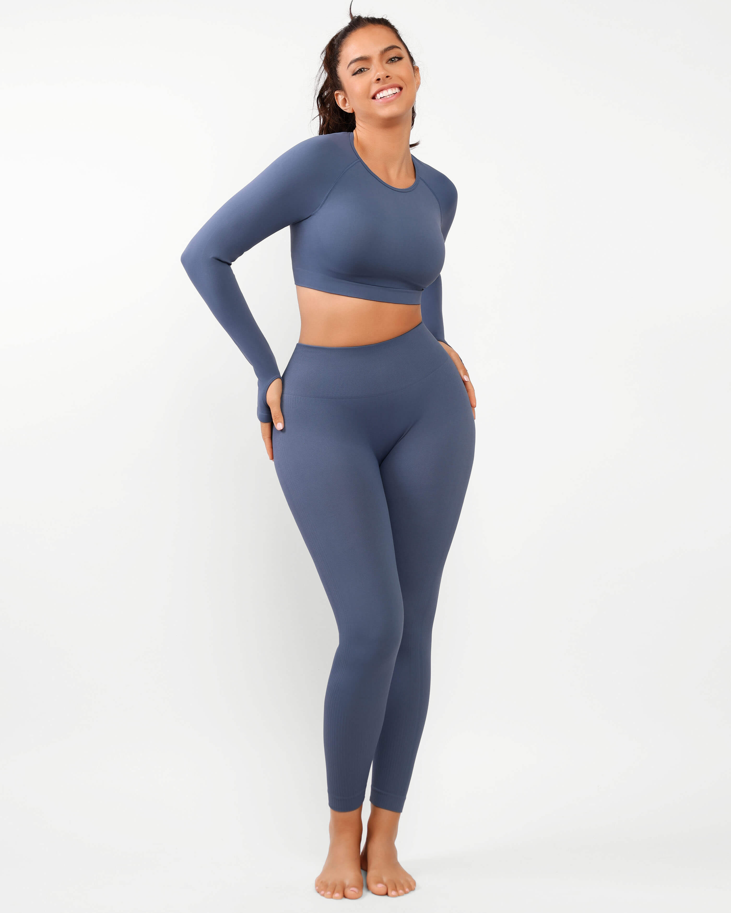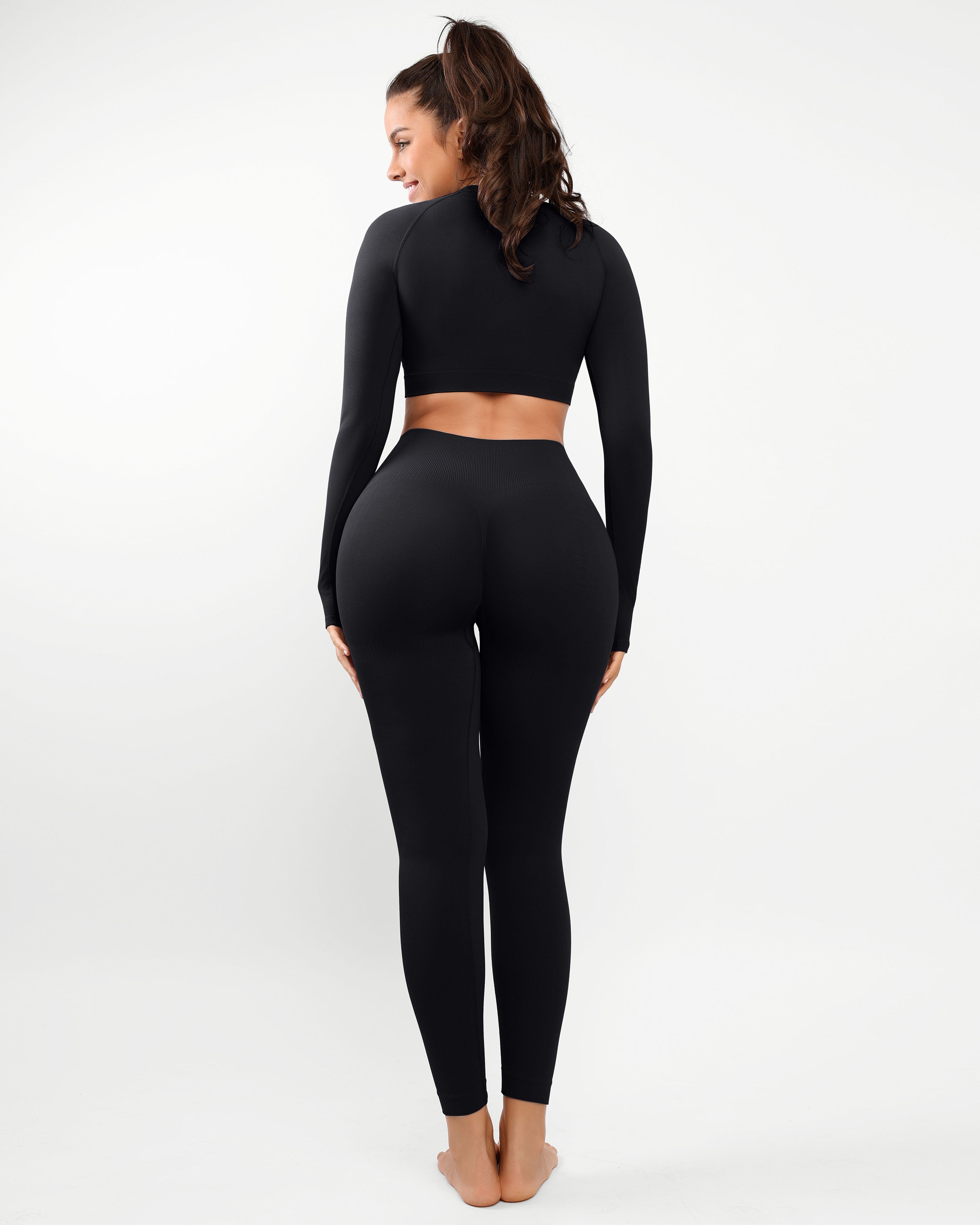 - Ruched seam for a natural butt-lifting effect.