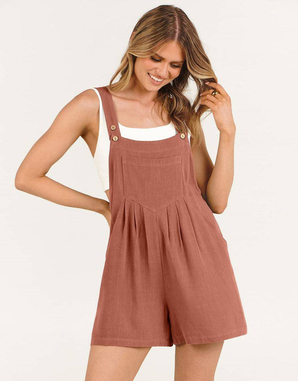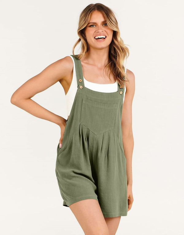 ANRABESS Casual Adjustable Strap Linen Short Bib Overalls Jumpsuit Rompers