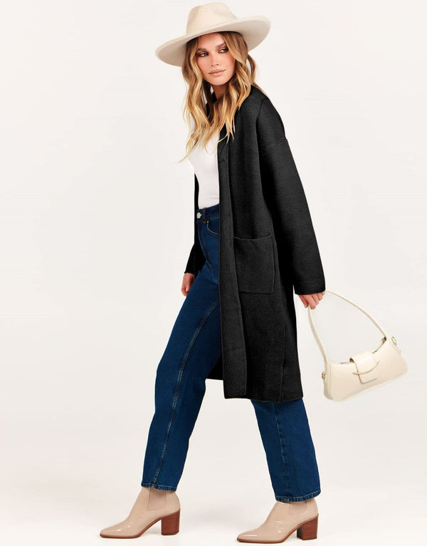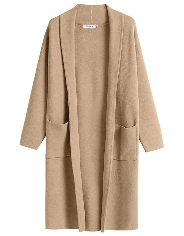 ANRABESS Women's 2023 Fall Cardigan Sweater Long Sleeve Open Front Lapel Coat Casual Knit Coatigan Jacket with Pockets