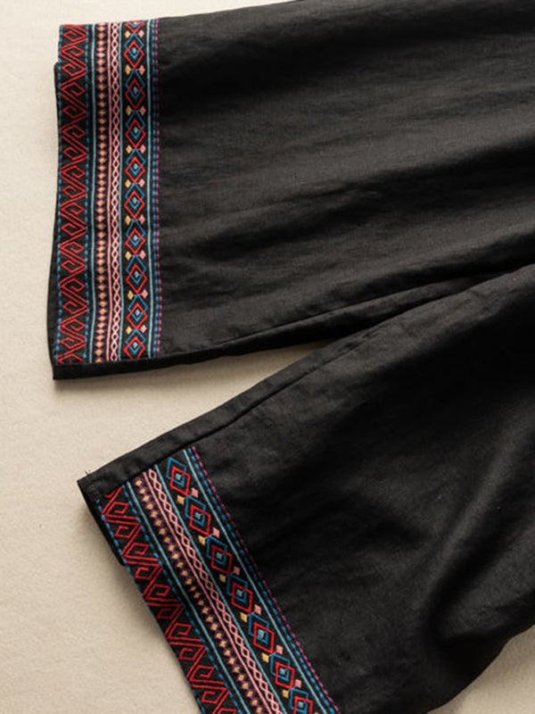 Cotton And Linen Embroidery Hanging Up Wide -leg Pants