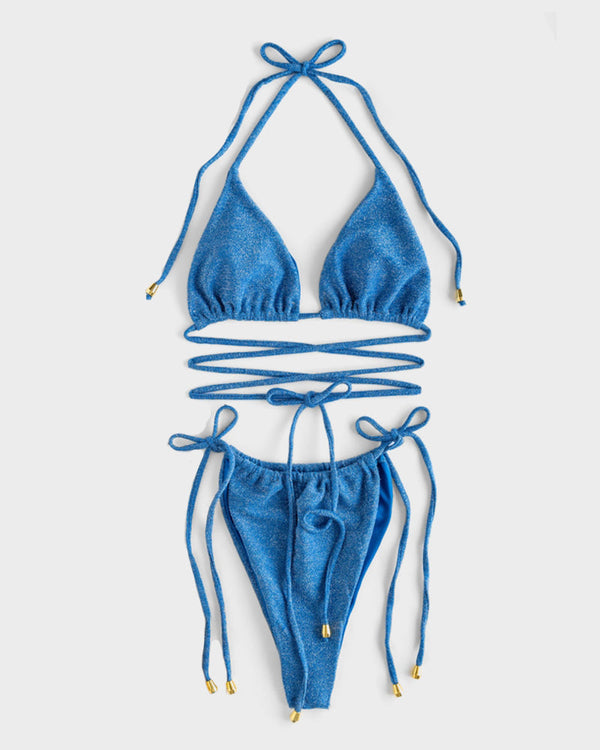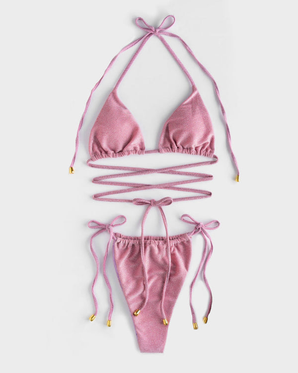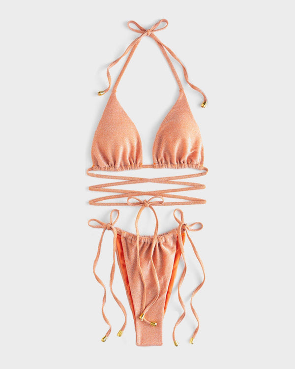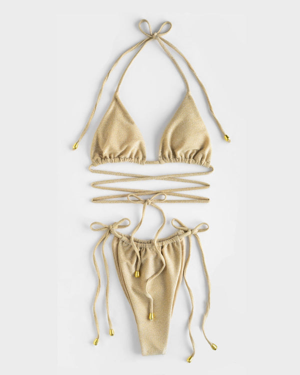 Featuring trendy strappy details on both the top and bottom, this bikini adds a playful touch and enhances your overall look.