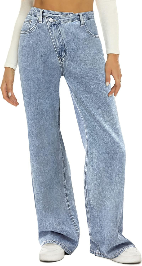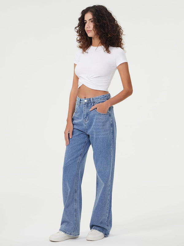 HDLTE Women Wide Leg Jeans High Waist Baggy Jeans Loose Boyfriend Jeans Denim Pants Y2K
