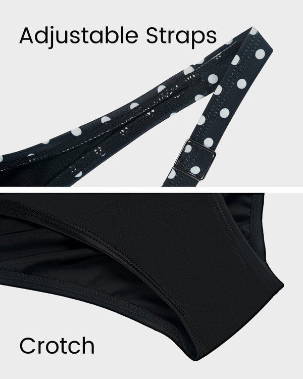 The high-waisted bottoms provide excellent coverage while flattering your waistline, creating a classic, feminine silhouette.