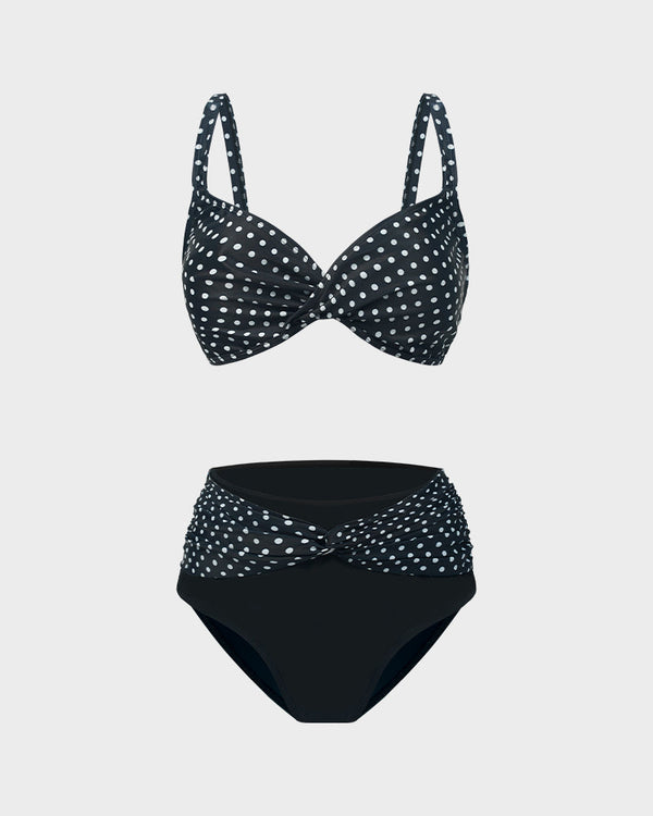 The timeless polka dot print adds a fun and playful touch, making this bikini a standout piece for any summer wardrobe.