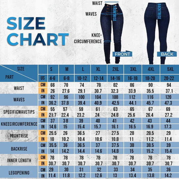 ![Plus Vertical Striped High Waist Raw Hem Flare Jeans conversion chart & size guide]()