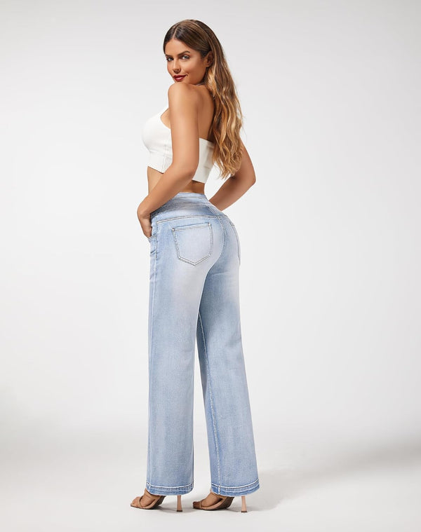 roswear Women’s Wide Leg Jeans Casual High Waisted Stretch Baggy Loose Jeans