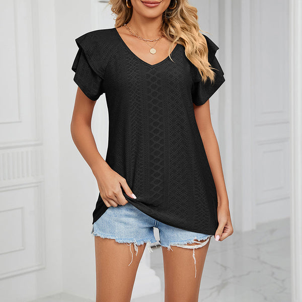 Solid Color Double-sleeved V-neck Loose T-shirt (Buy 3 Free Shipping)