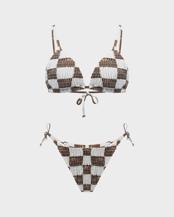 The classic check pattern adds a timeless touch, making this bikini perfect for both beach days and pool parties.
